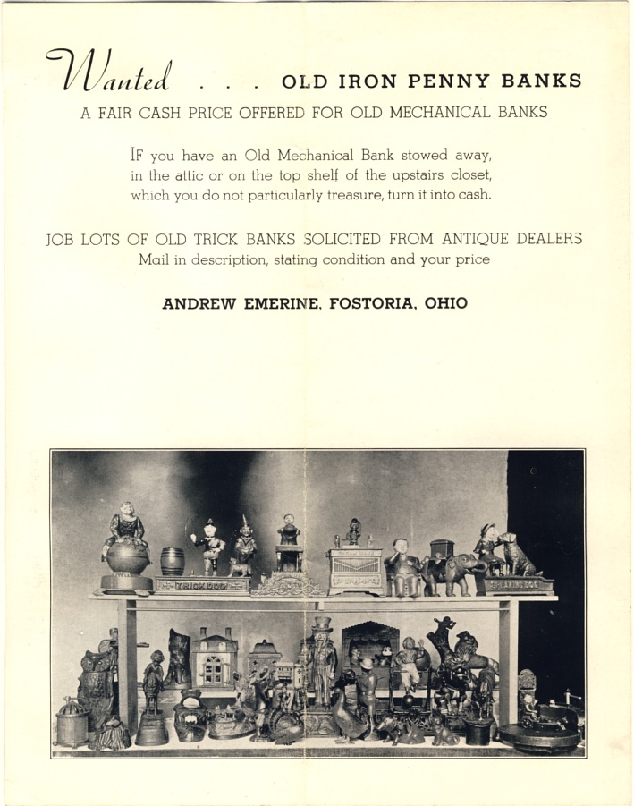 A FAIR CASH PRICE OFFERED FOR OLD MECHANICAL BANKS