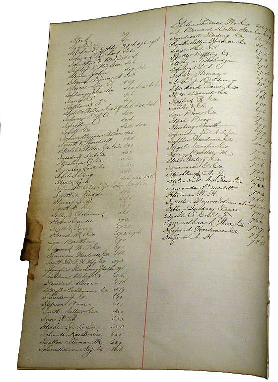 original J. & E. Stevens Company ledger followed by page numbers where the